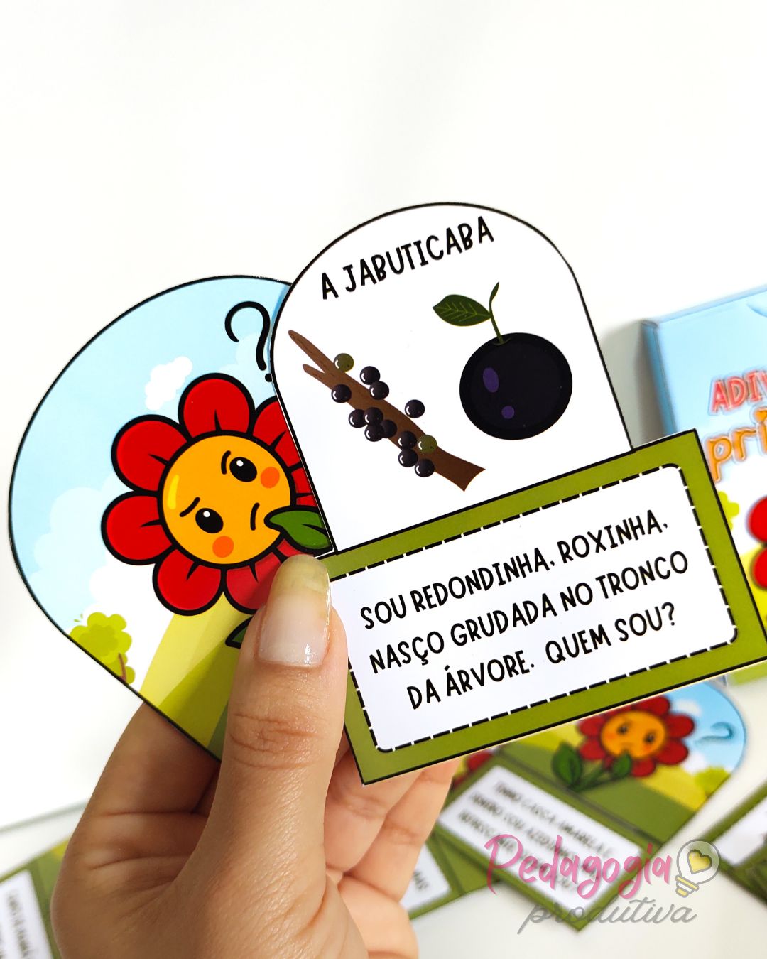 O material inclui uma caixinha personalizada para guardar as fichas e facilitar o uso em sala de aula.