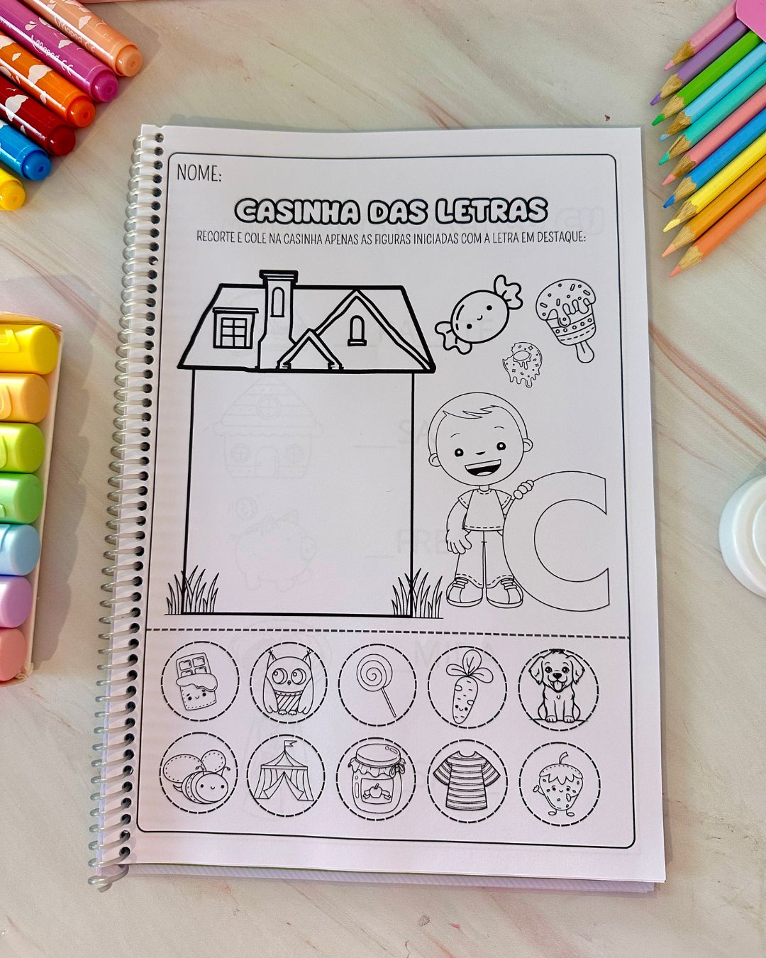 Apostila de atividades e recursos para trabalhar a letra C com crianças em fase de alfabetização. No total são 24 páginas de atividades. O arquivo vai em PDF pronto para impressão.