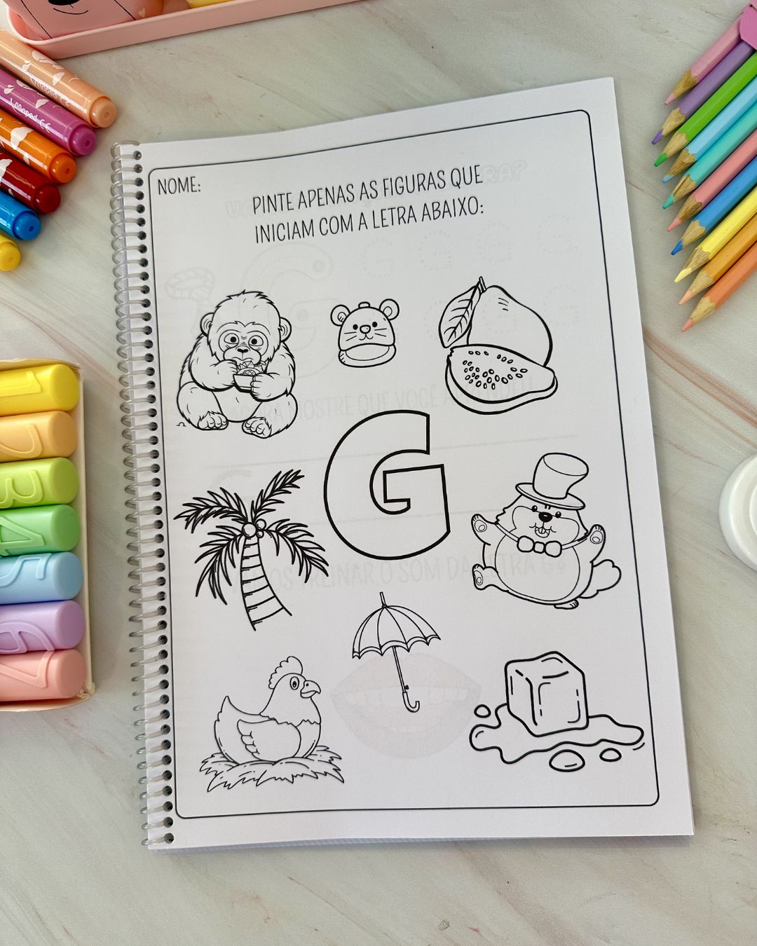 Apostila de atividades e recursos para trabalhar a letra G com crianças em fase de alfabetização. No total são 24 páginas de atividades. O arquivo vai em PDF pronto para impressão, não editável.