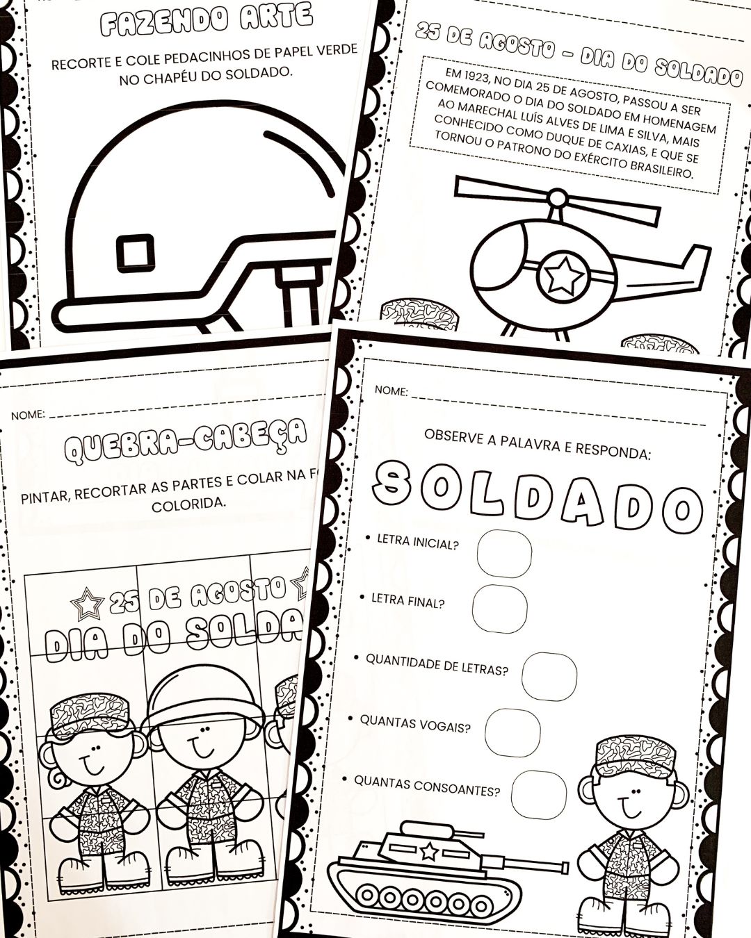 Atividades para trabalhar o Dia do Soldado com crianças da Educação Infantil.