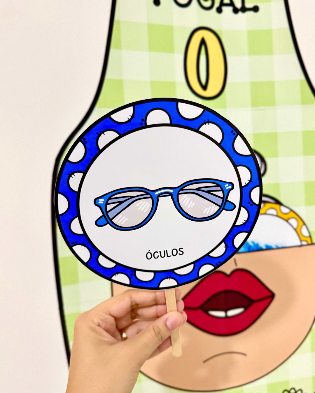 Desenvolve consciência Fonológica, pois o bolsinho possui a ilustração da boca que representa o som da vogal.