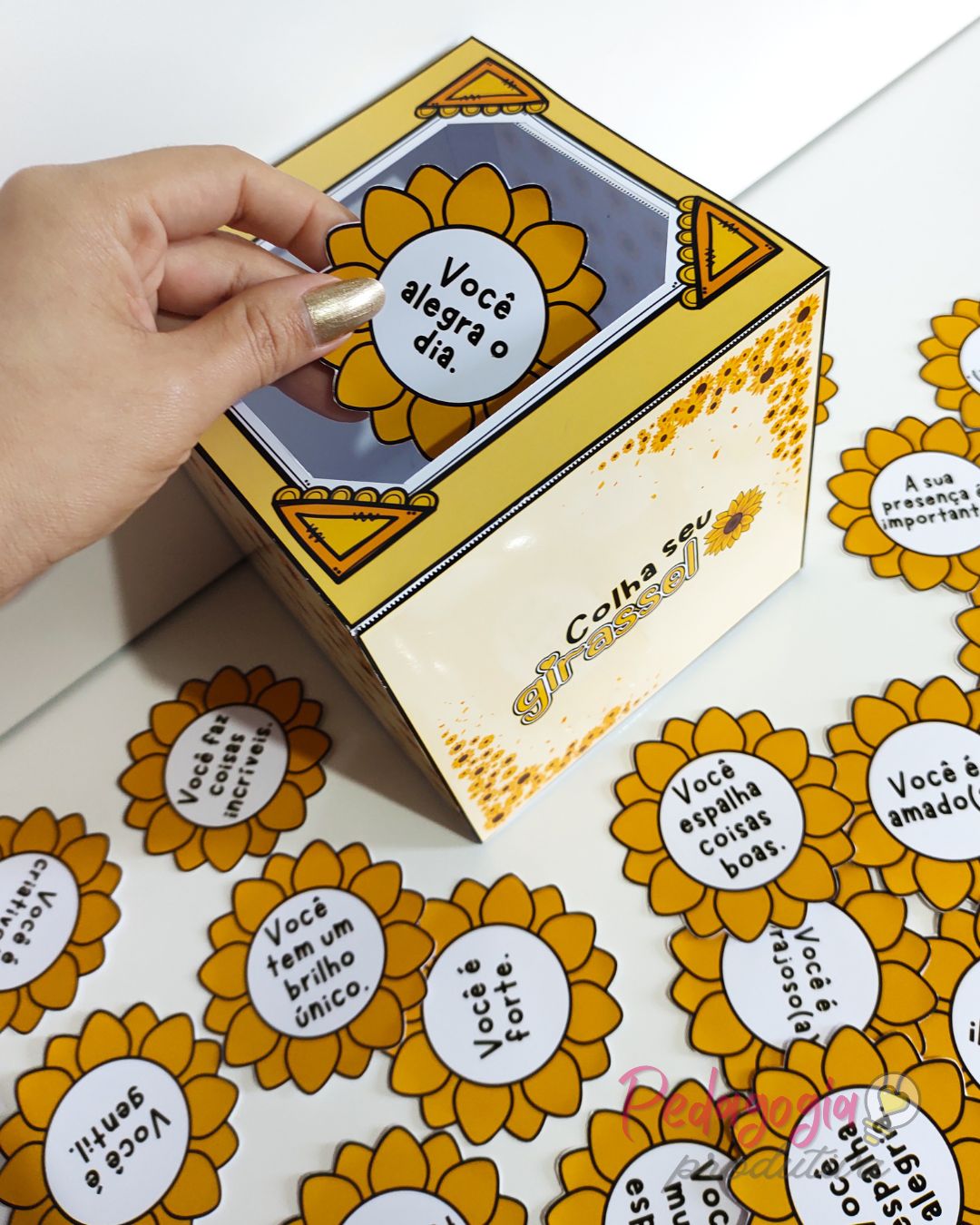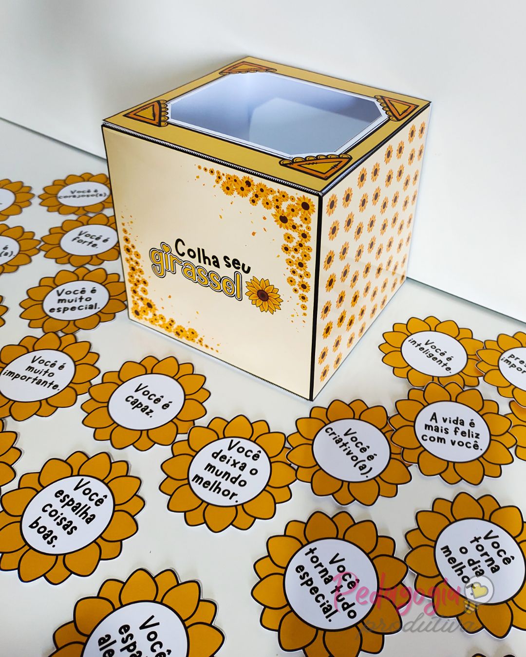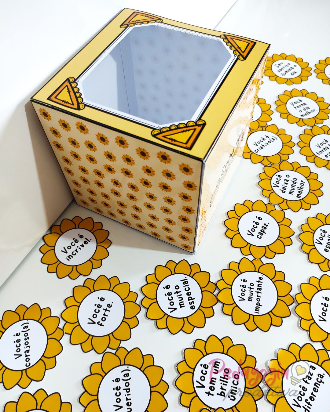 A Caixinha Motivadora “Colha seu Girassol” é uma opção lúdica e especial para utilizar no Setembro Amarelo.