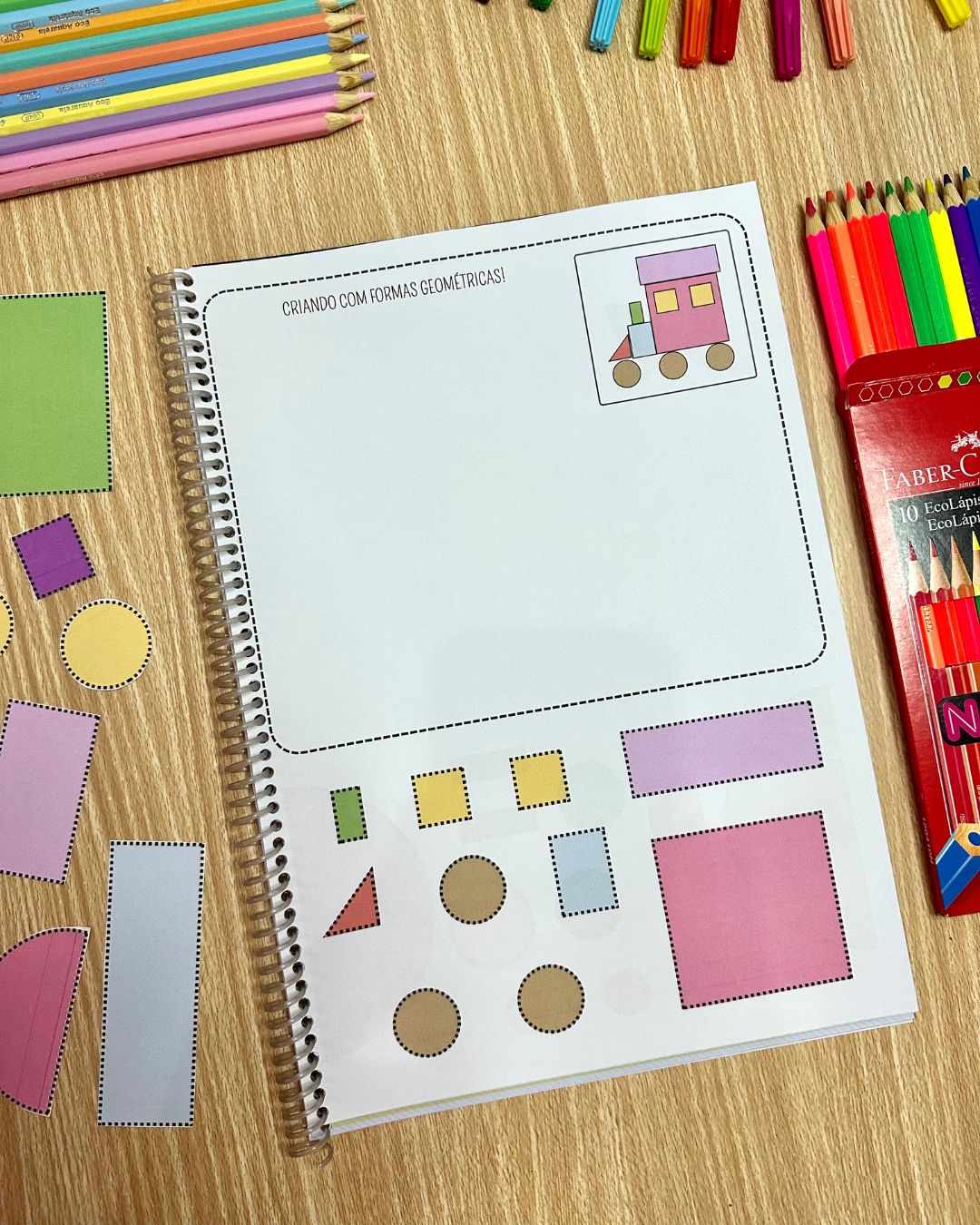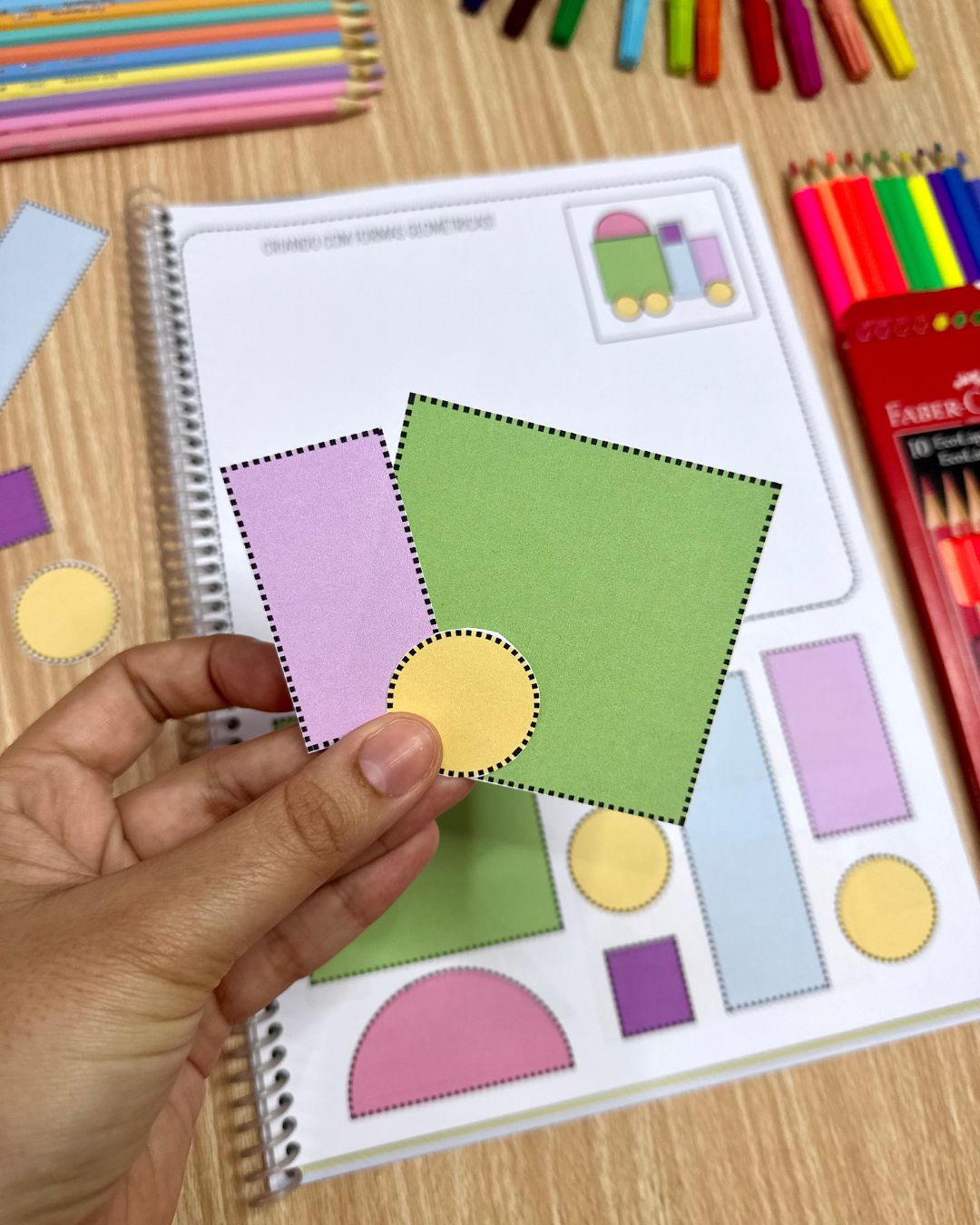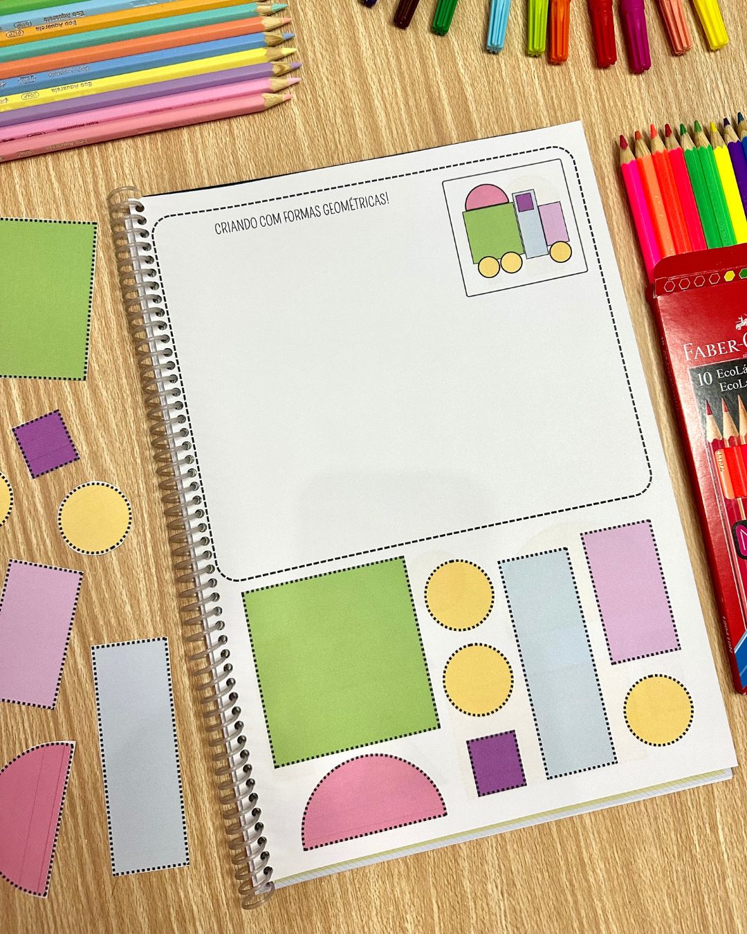 O arquivo Criando com Formas inclui 24 páginas de atividades, com opção de figuras coloridas e para colorir. Essa proposta oferece a possibilidade de desenvolver habilidades importantes para as crianças a partir de 4 anos, além de ser uma sugestão atrativa e prazerosa. Os conteúdos trabalhados são: