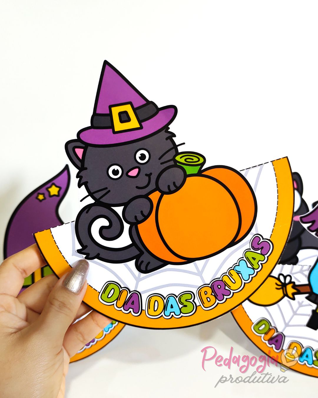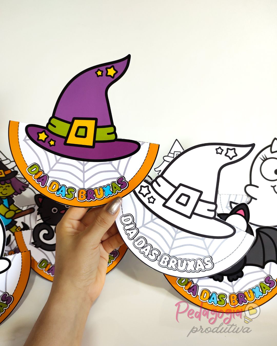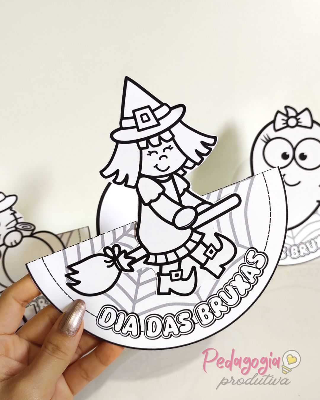 O material inclui 5 modelos temáticos, disponíveis nas versões colorida e para colorir, permitindo que as crianças personalizem suas produções.