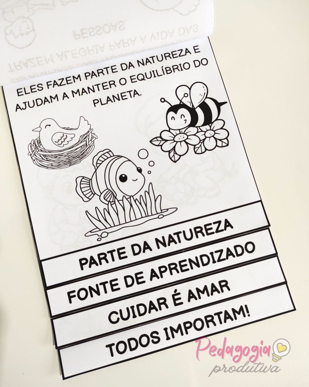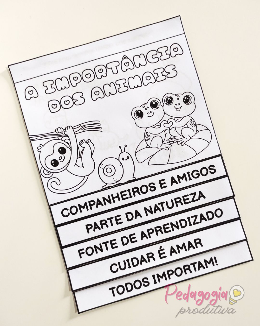 O material está disponível na versão para colorir, permitindo que as crianças personalizem o flipbook enquanto desenvolvem habilidades de pintura, recorte e colagem.