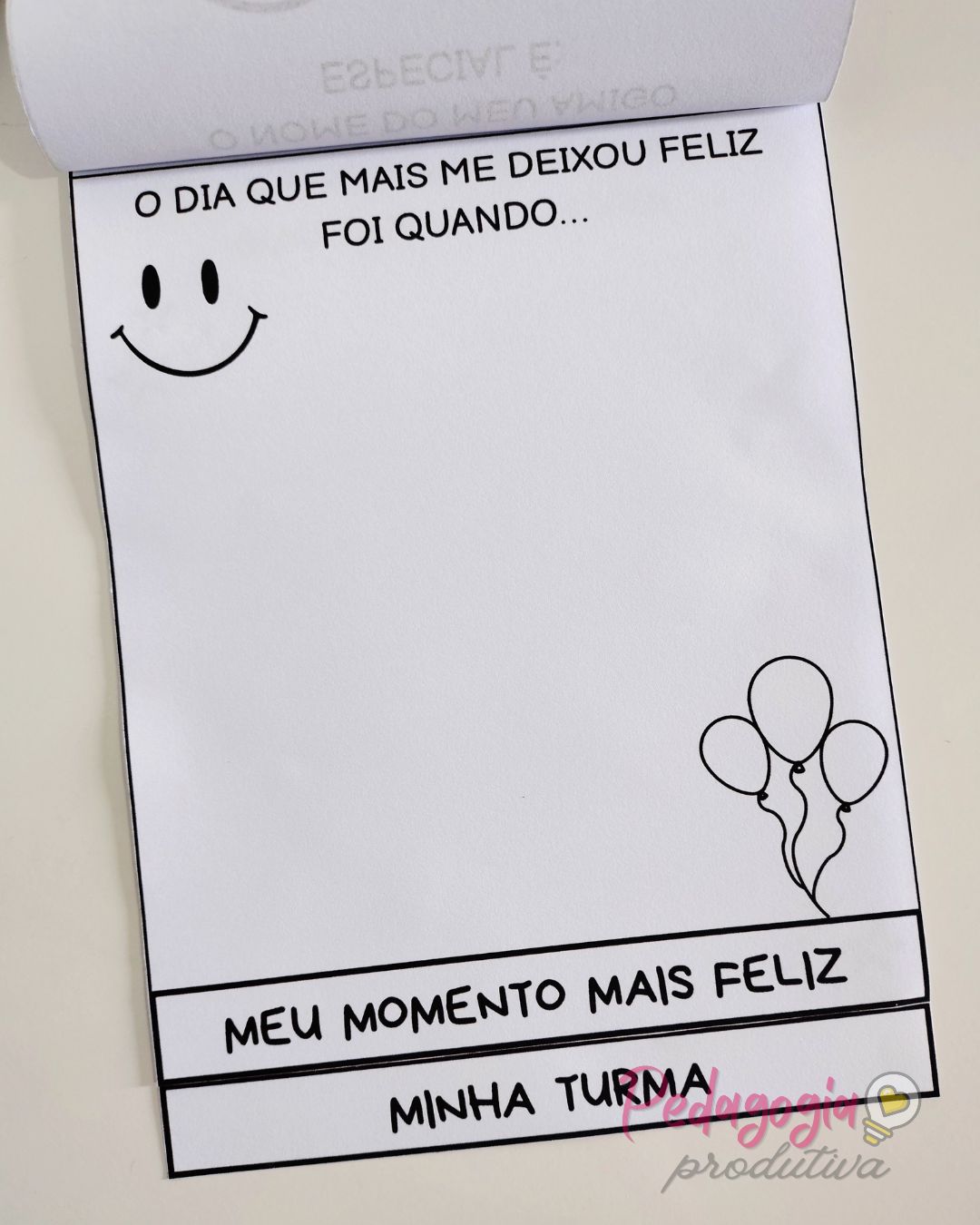 A proposta incentiva os alunos a refletirem sobre momentos especiais, desenvolvendo memória afetiva e valorizando experiências positivas do ano letivo.