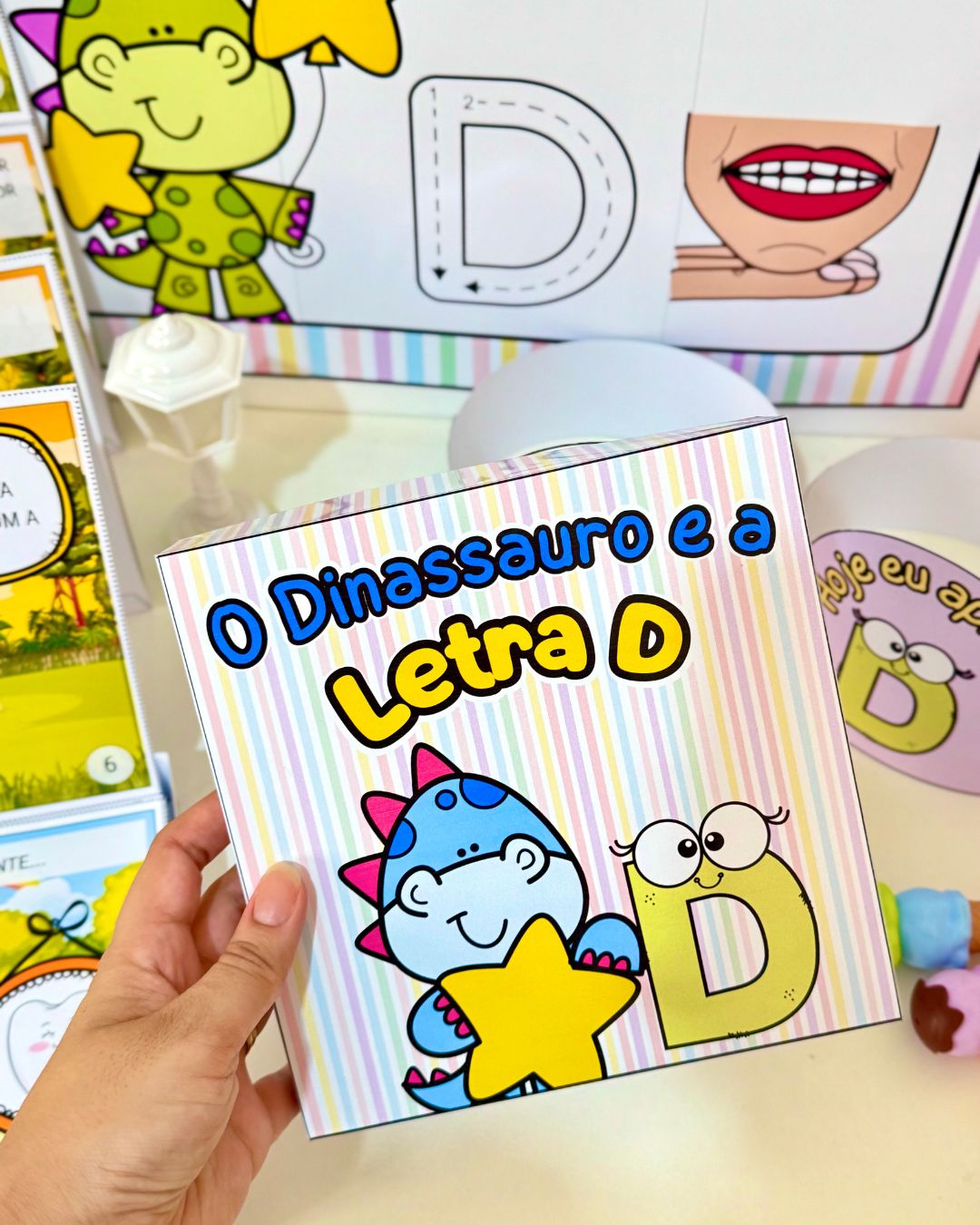 Kit História na Caixa e Cartaz Letra “D” para trabalhar o conteúdo com crianças da Educação Infantil e séries iniciais do Ensino Fundamental.