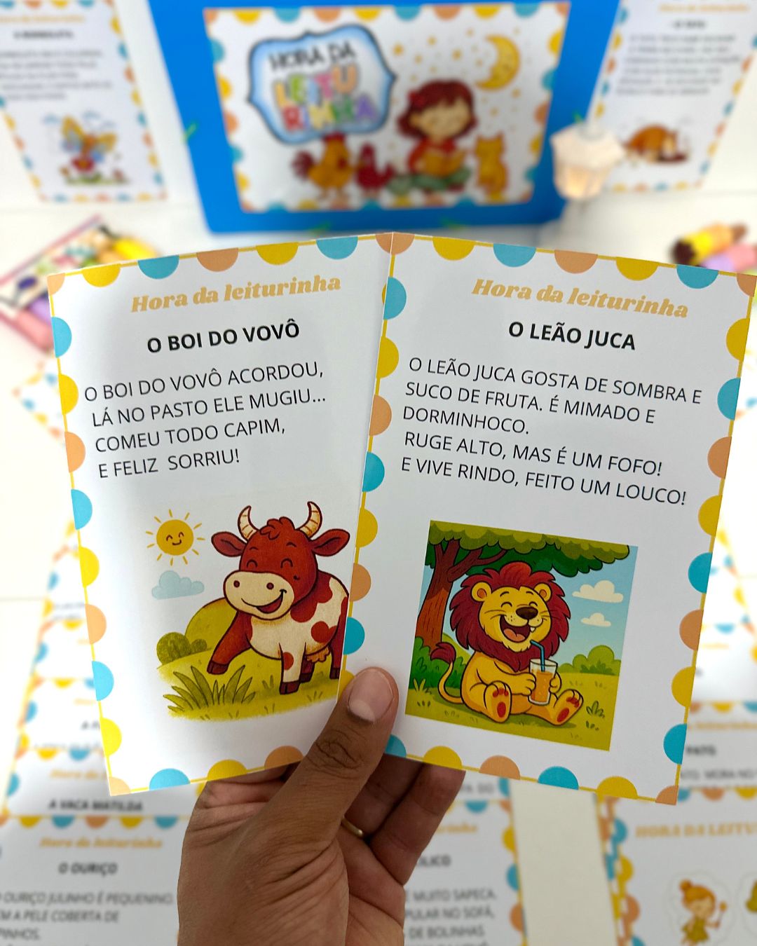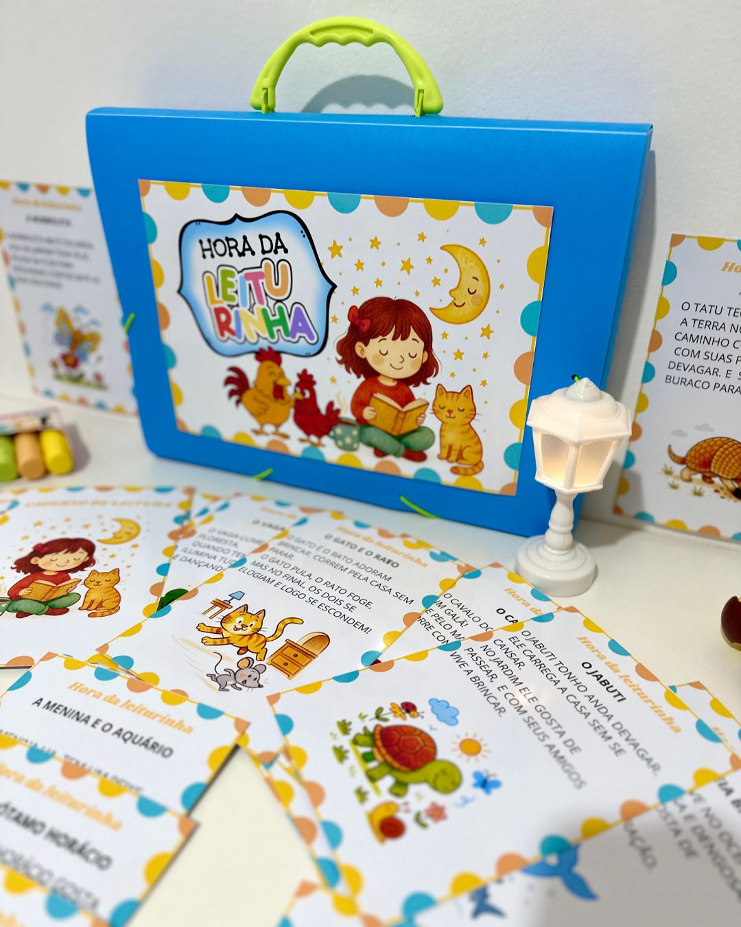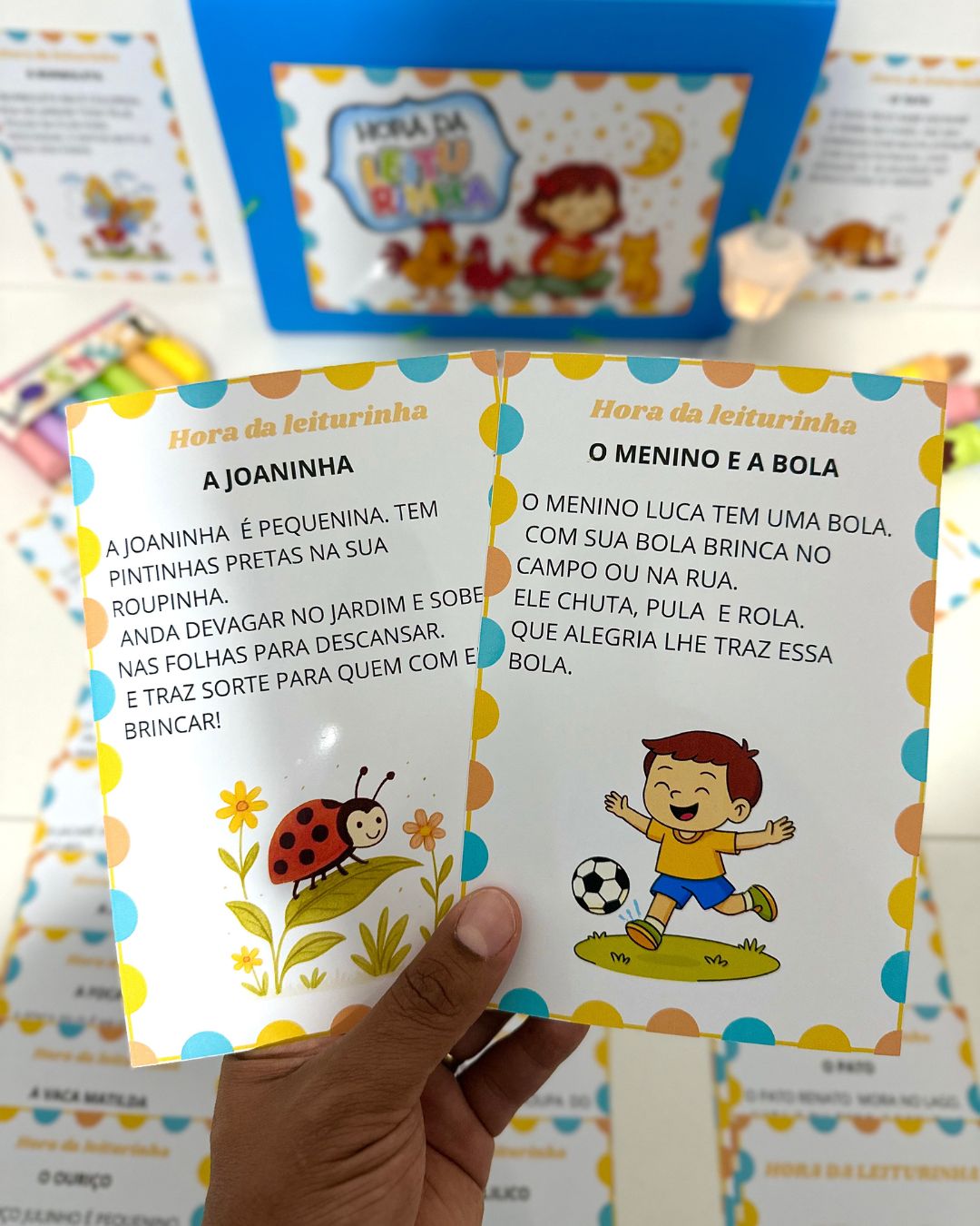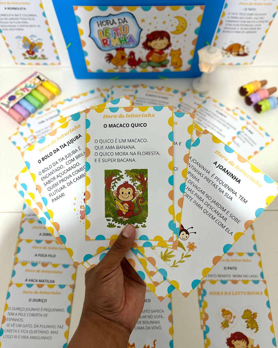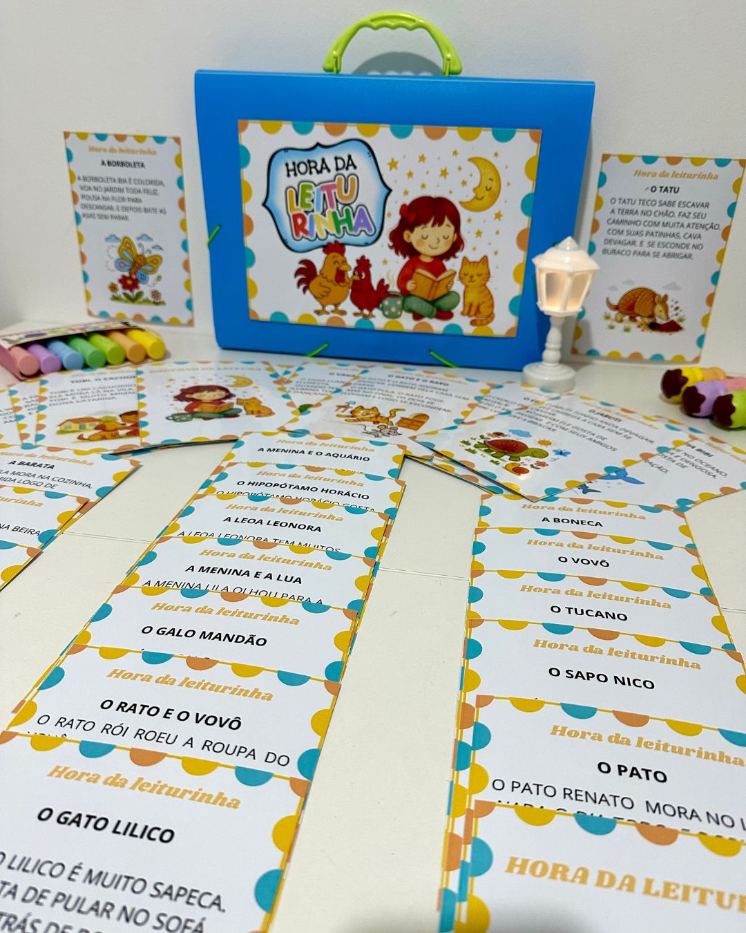 Material Hora da Leiturinha com diversos pequenos textos para treino de leitura, ideal para crianças em fase de Alfabetização.