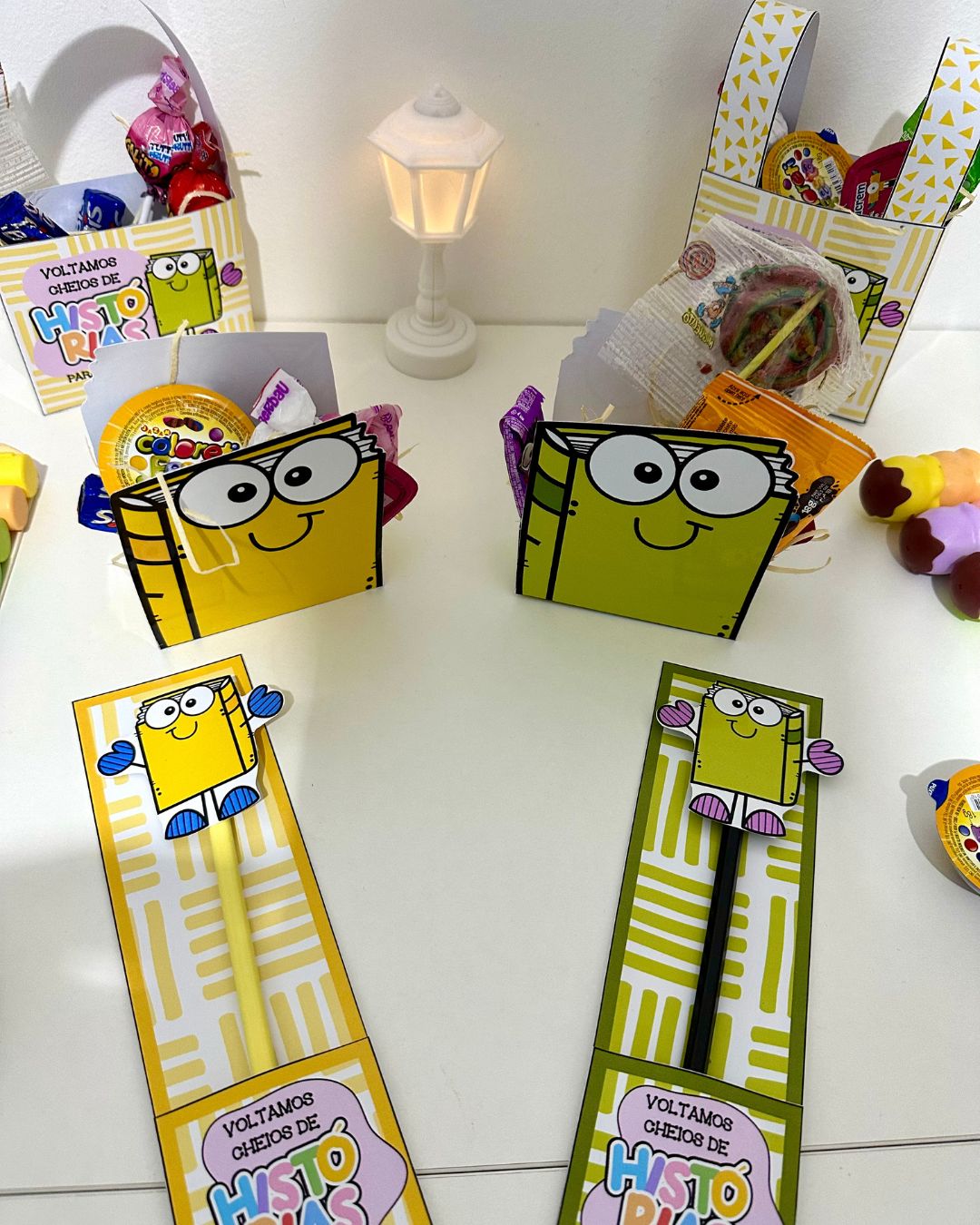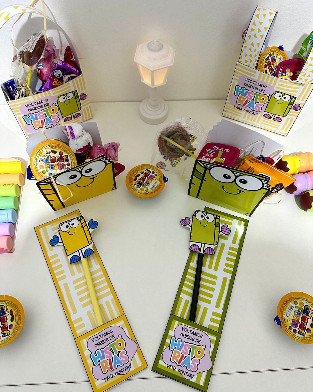 Kit Lembrancinhas Volta às Aulas ideal para turmas da Educação Infantil e séries iniciais do Ensino Fundamental.