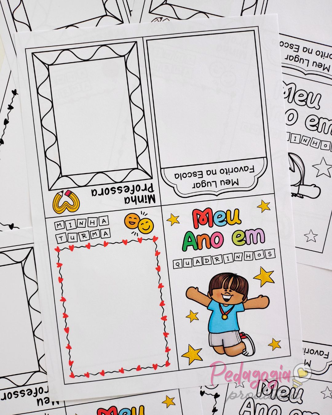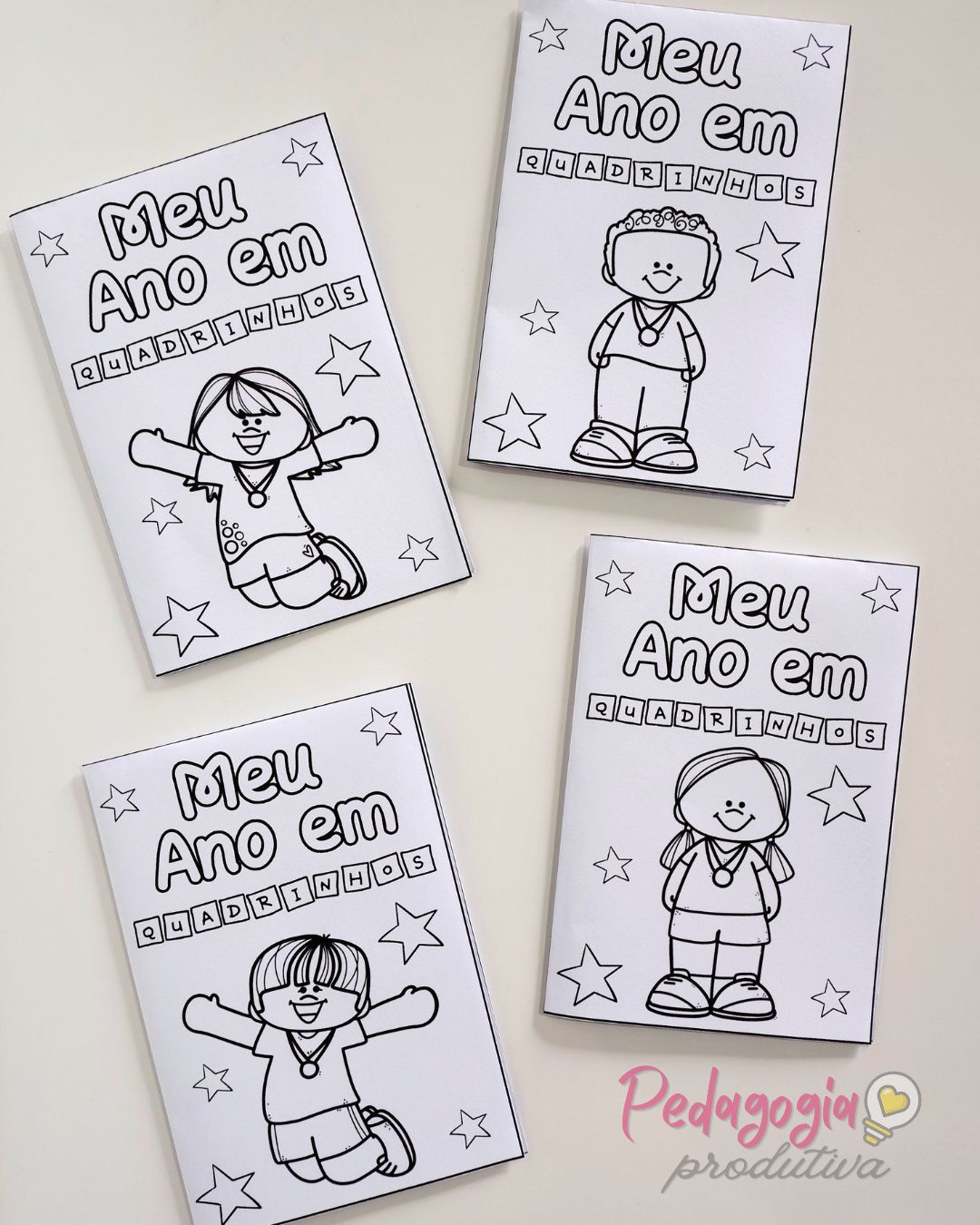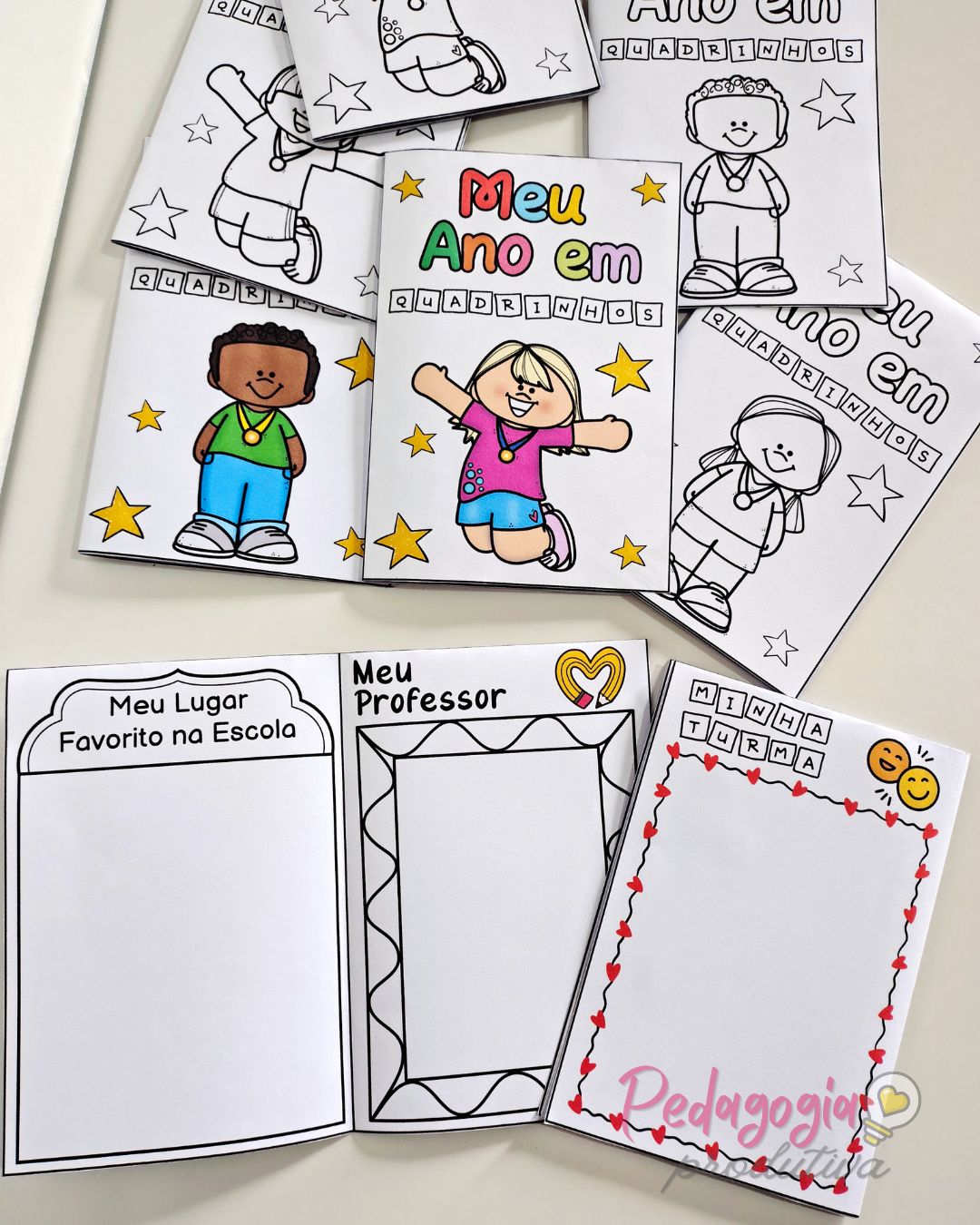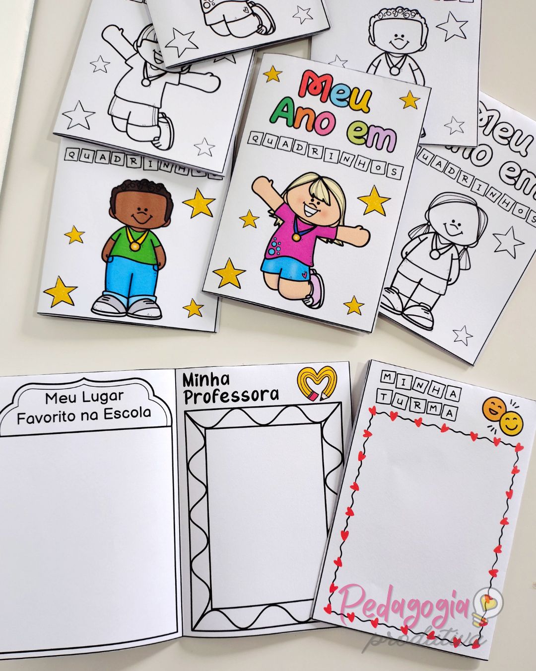 O livrinho “Meu Ano em Quadrinhos” é uma atividade para registrar as memórias do ano letivo de forma simples, criativa e divertida. As crianças podem desenhar sua turma, a professora ou o professor e o lugar favorito na escola, deixando tudo registrado com muito carinho.
