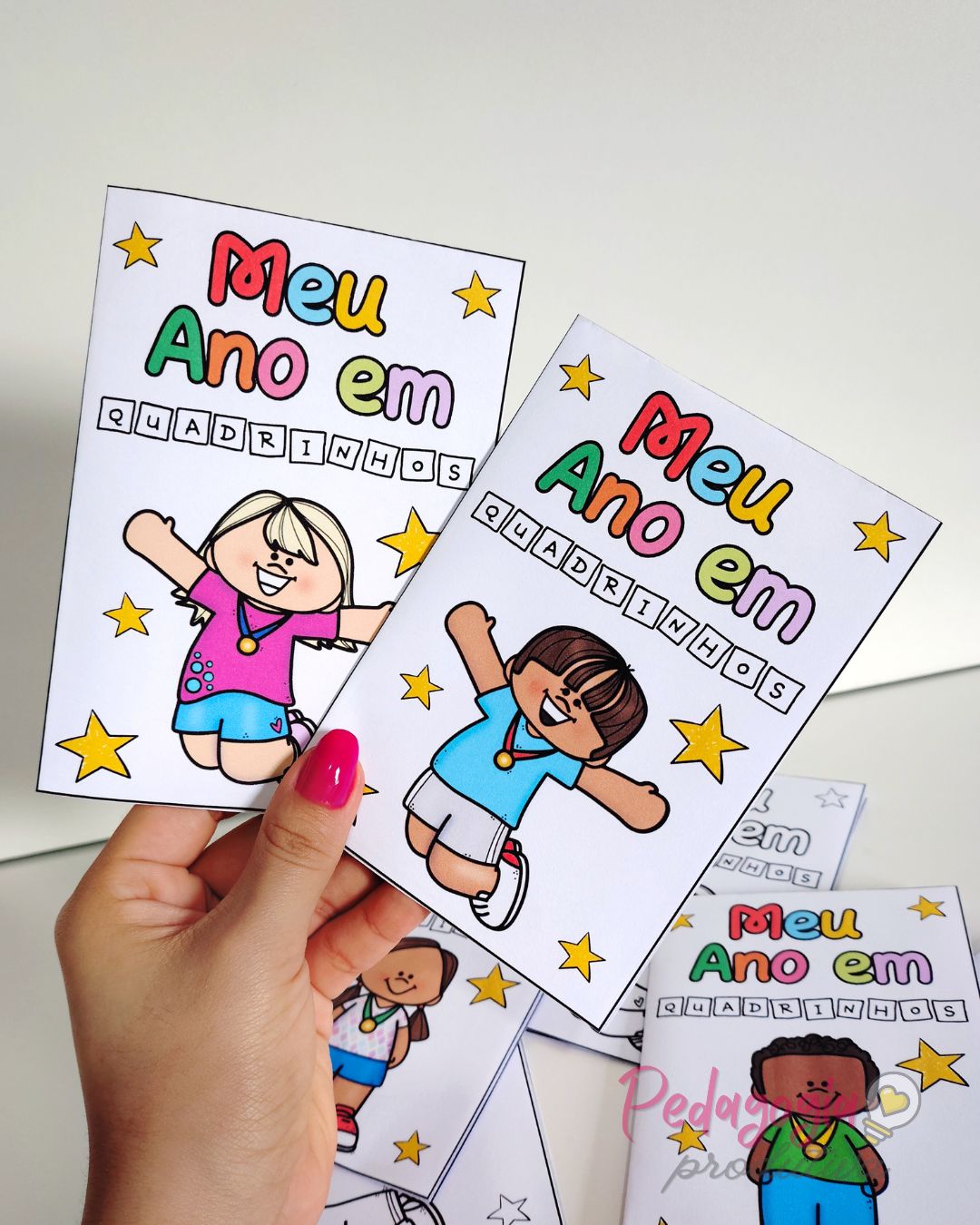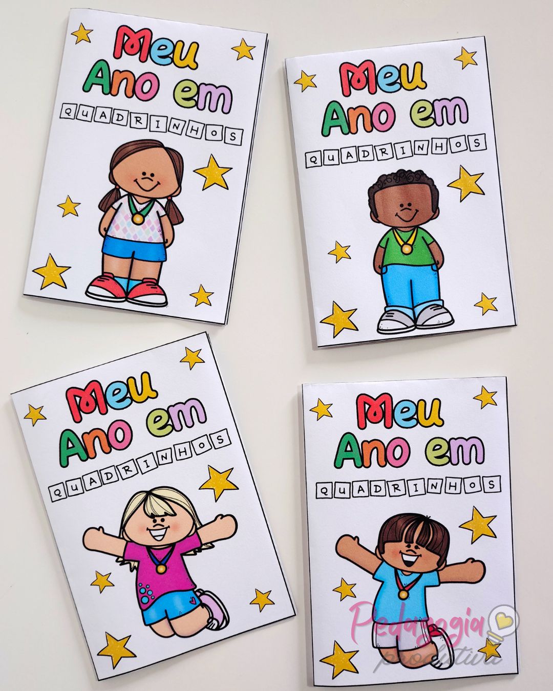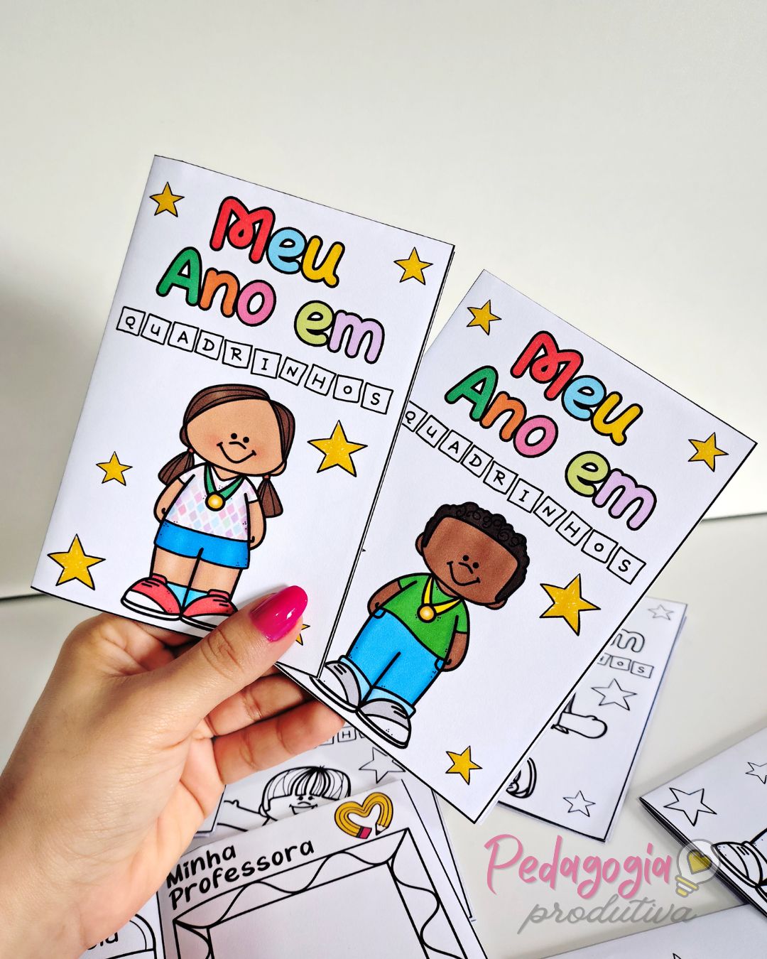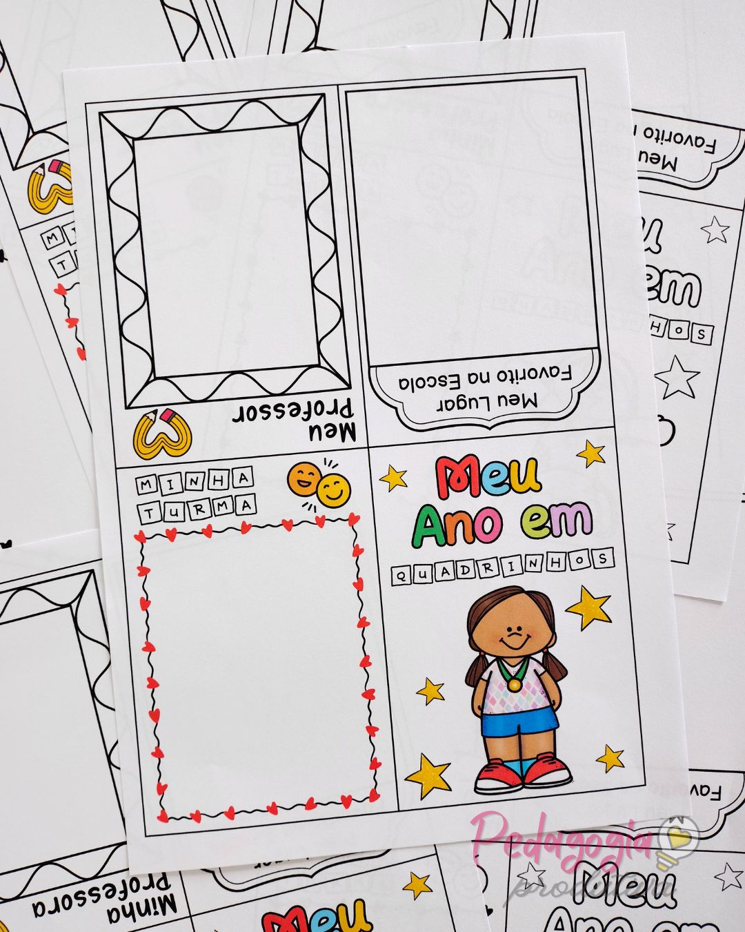 O livrinho “Meu Ano em Quadrinhos” é uma atividade para registrar as memórias do ano letivo de forma simples, criativa e divertida. As crianças podem desenhar sua turma, a professora ou o professor e o lugar favorito na escola, deixando tudo registrado com muito carinho.