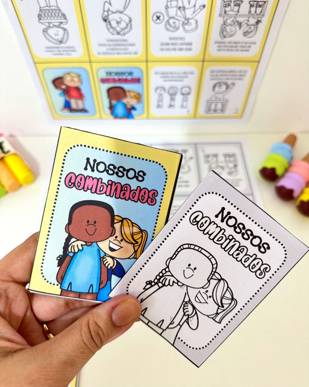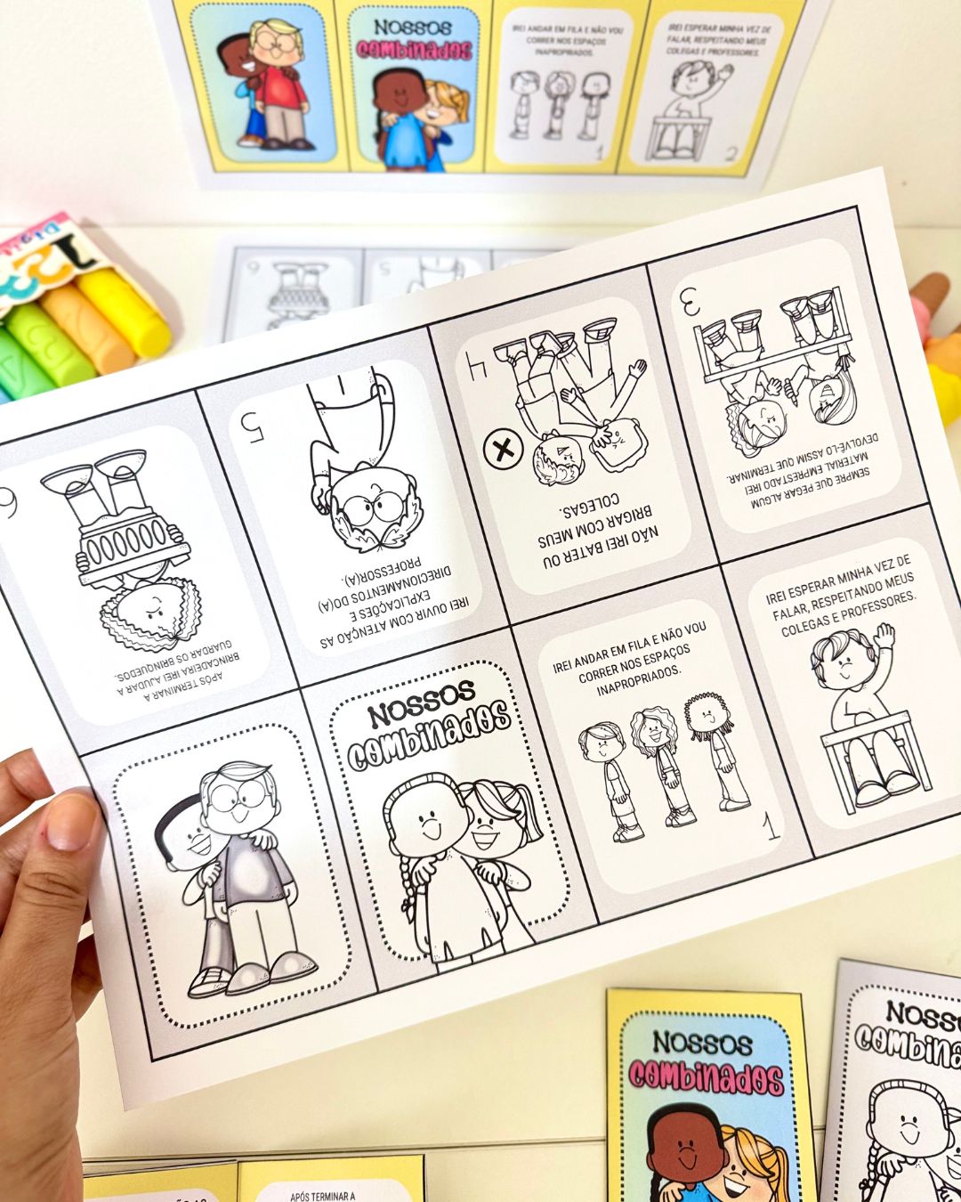 Livrinho para colorir Nossos Combinados para trabalhar o tema com crianças da Educação Infantil e séries iniciais do Ensino Fundamental.