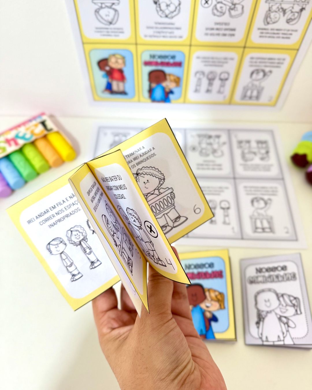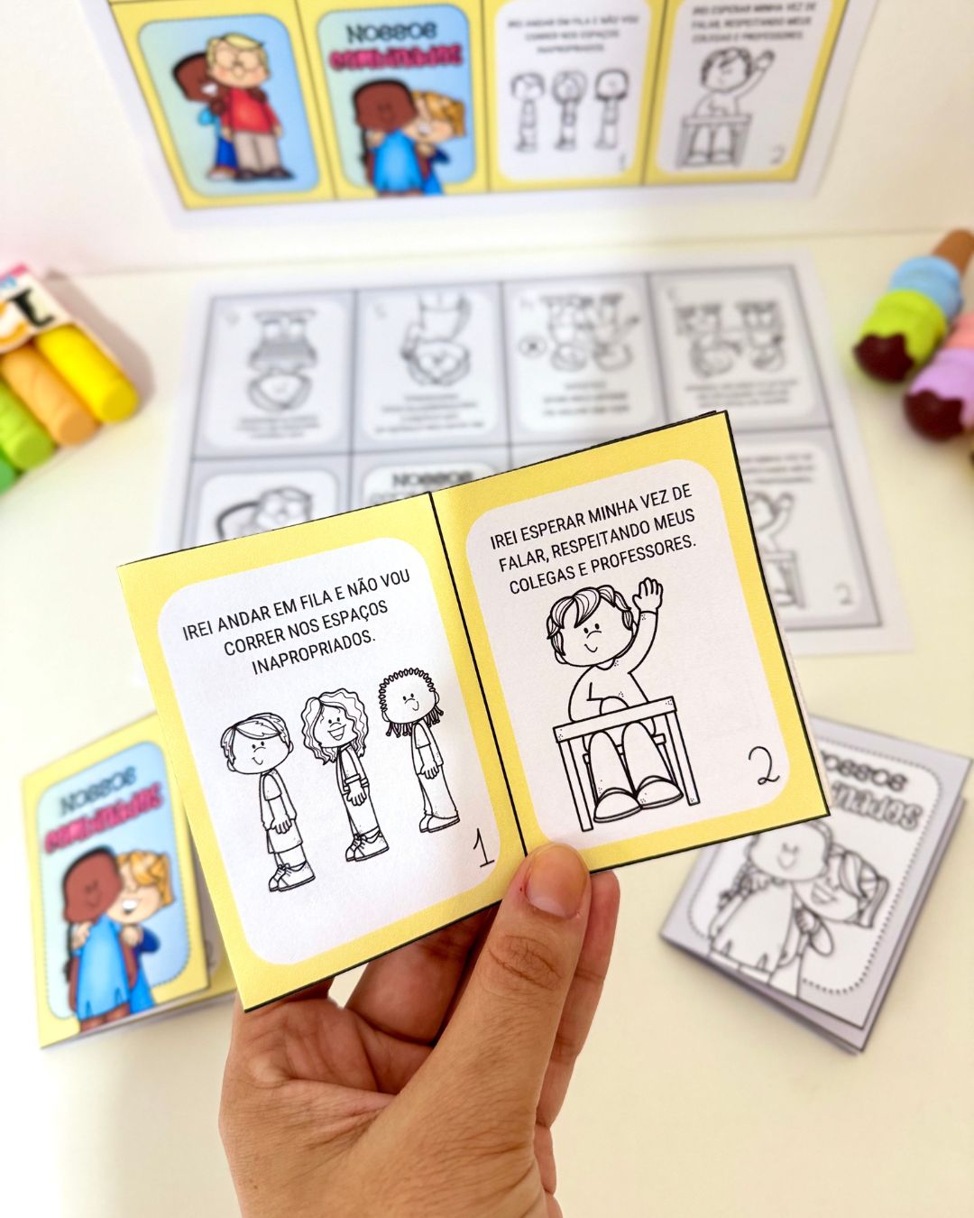 Vai com a capa na opção colorida e para colorir, e utiliza apenas 1 folha A4 para montar cada livrinho.