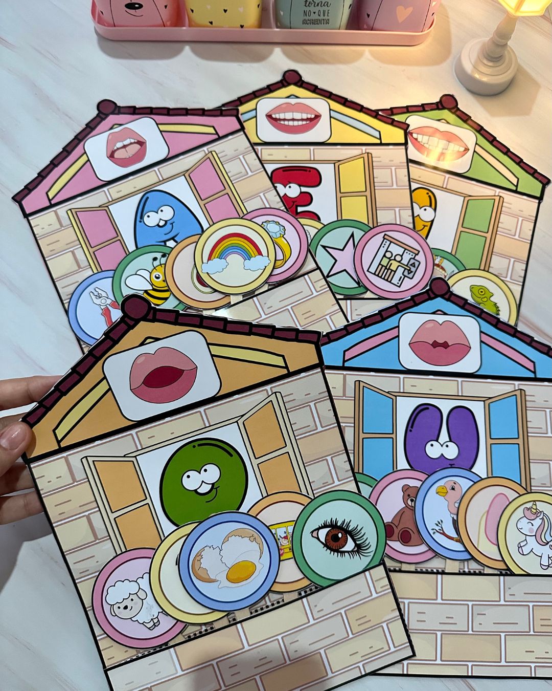 O arquivo inclui as 5 casinhas e esse material pode ser utilizado como luva pedagógica ou como recurso visual de parede.