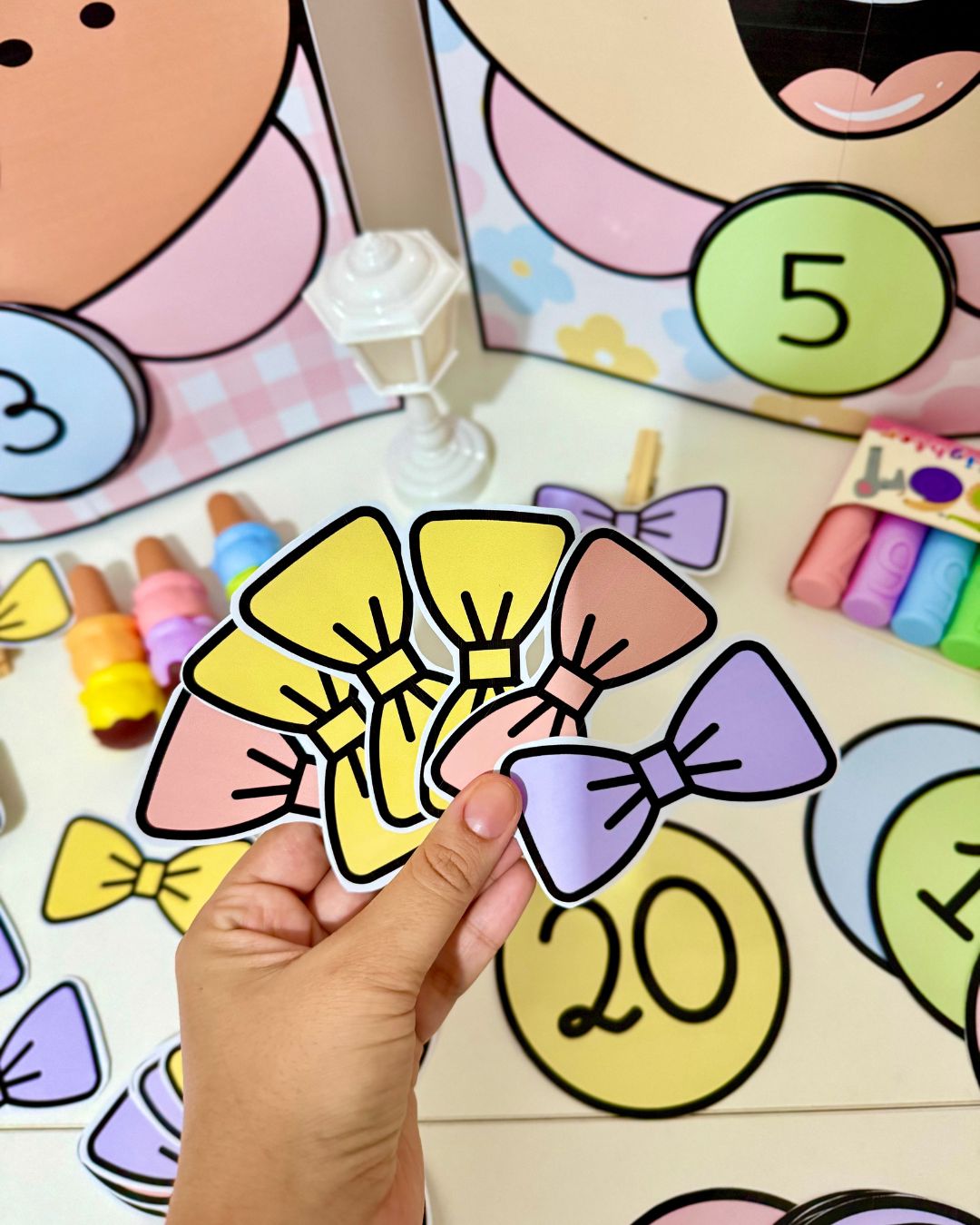 O material pode ser utilizado de diversas formas, trabalhando contagem oral, representação das quantidades, além de soma e subtração.