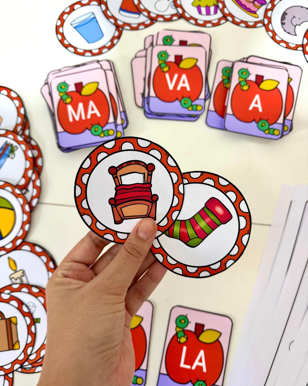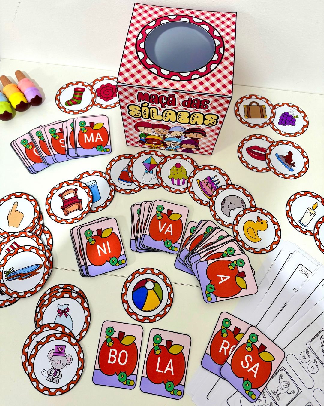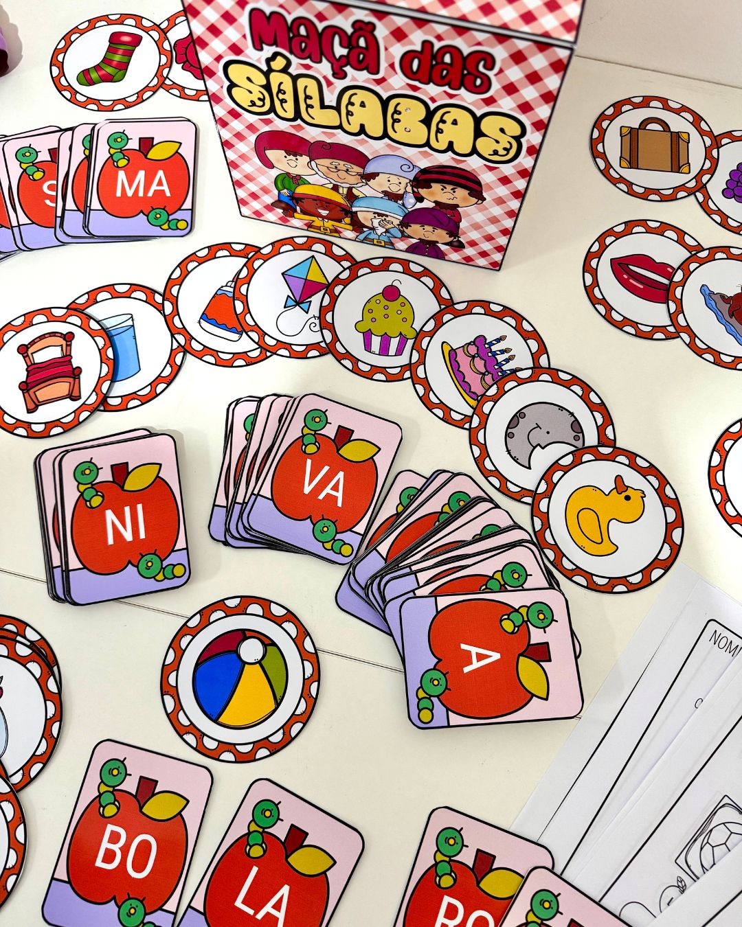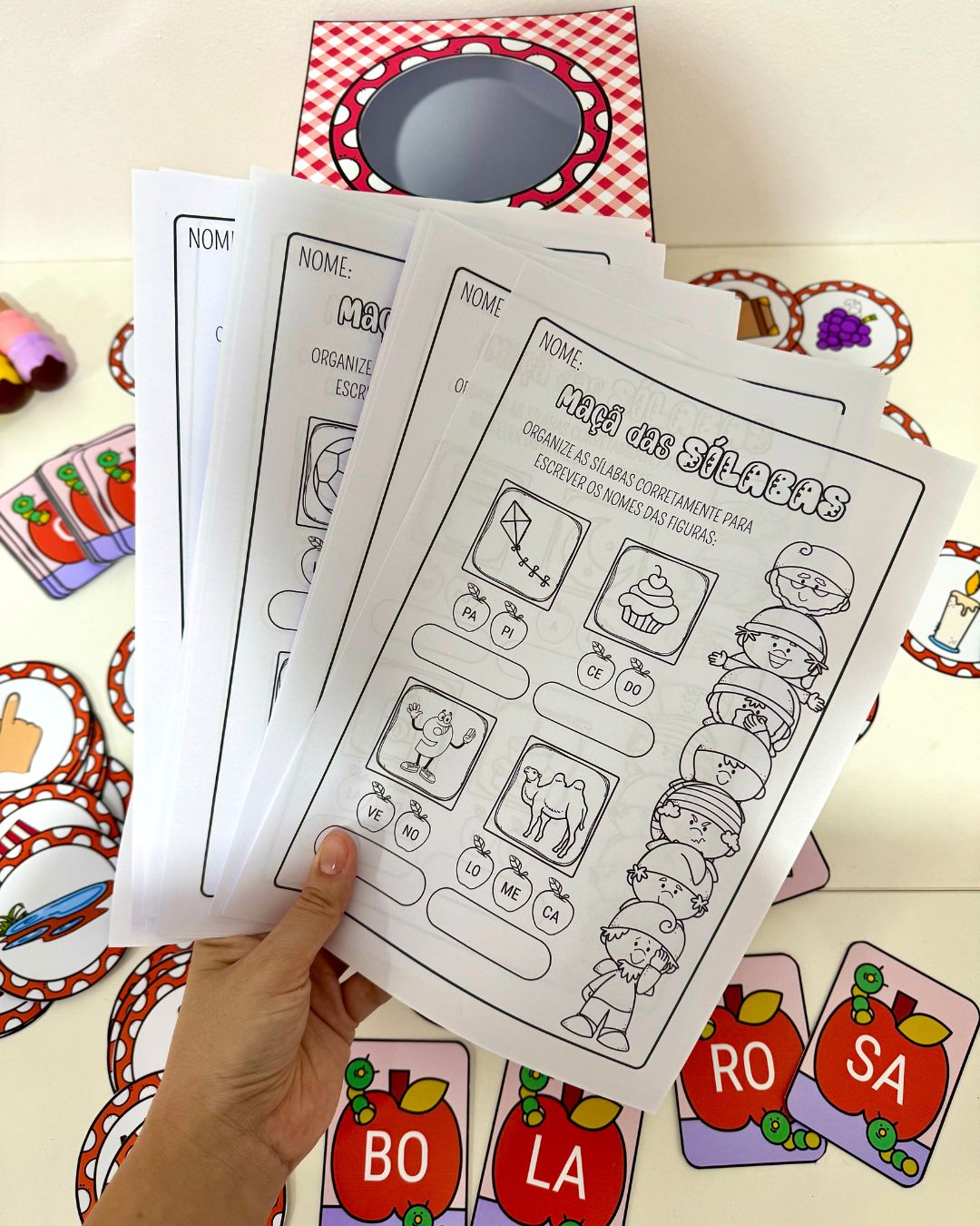 Kit Maçã das Sílabas para trabalhar leitura de sílabas e escrita de palavras com crianças em fase de Alfabetização.