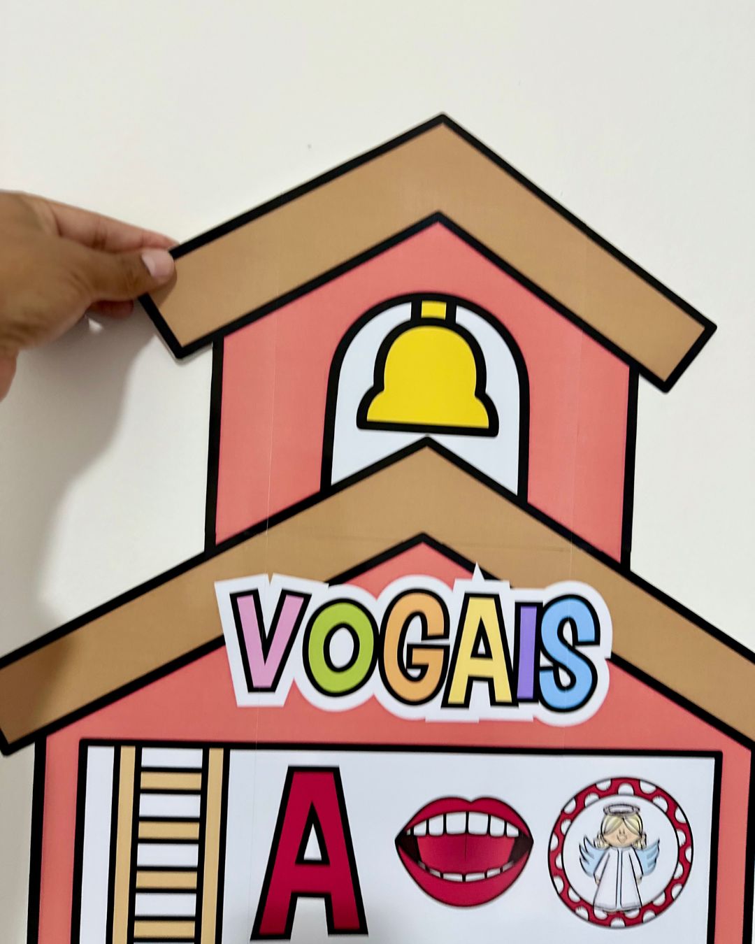 Painel Casa das Vogais para trabalhar o tema com crianças da Educação Infantil.