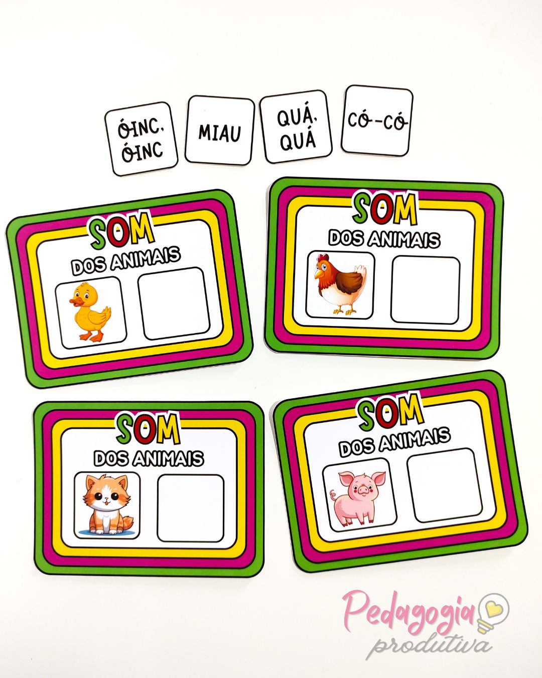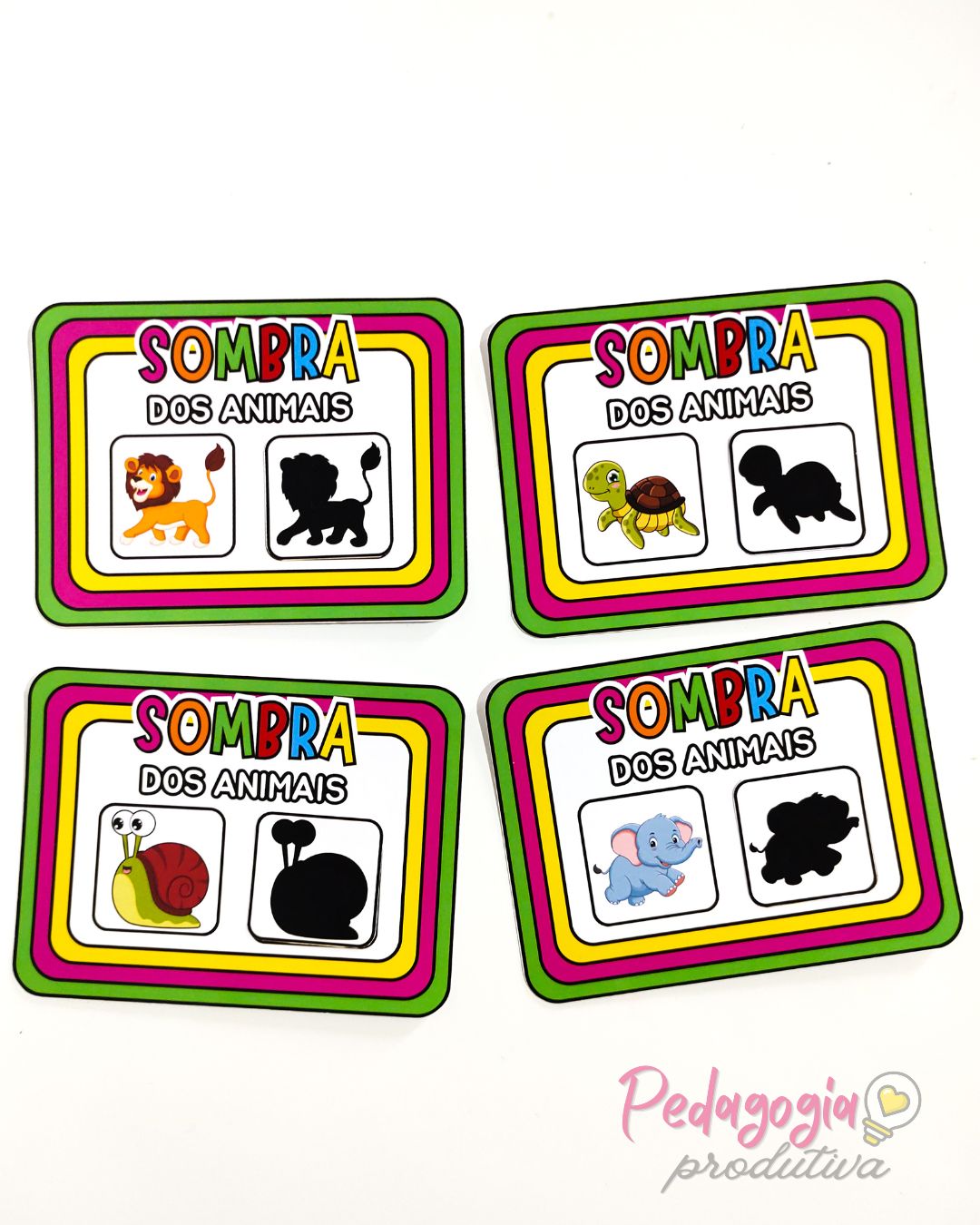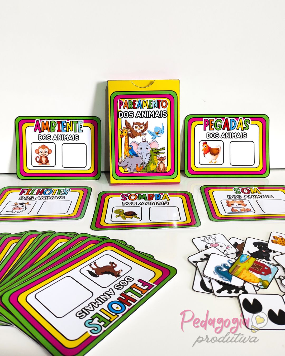 O material acompanha 20 fichas de pareamento no total, sendo 4 de cada tema: