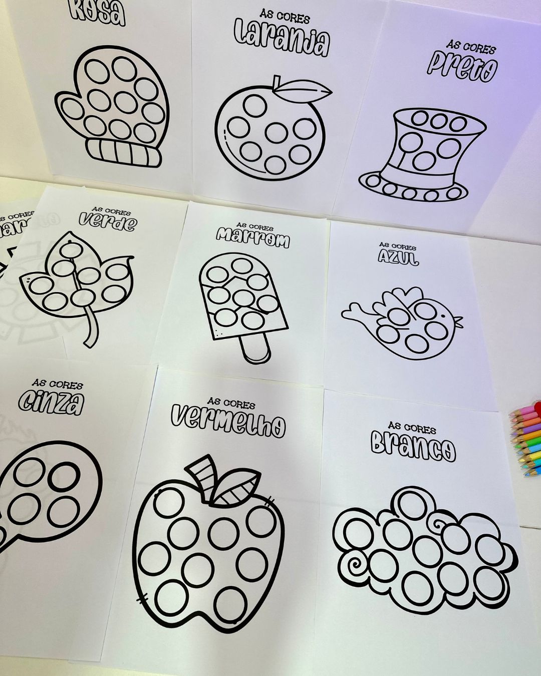 O arquivo vai com 11 páginas de atividades para colorir.