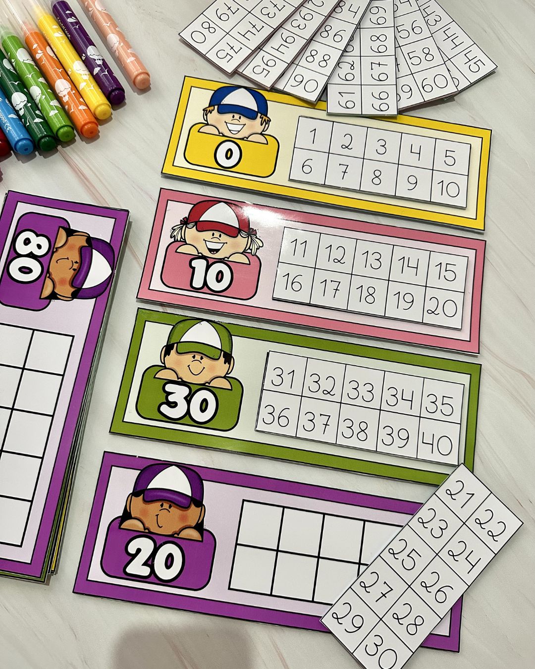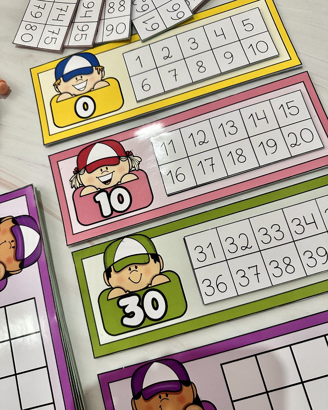 Recurso Sequência Numérica com fichas e números móveis para trabalhar os numerais de 0 a 100. O arquivo vai em PDF pronto para impressão, e é excelente para ser utilizado em turmas de educação infantil e séries iniciais do ensino fundamental.